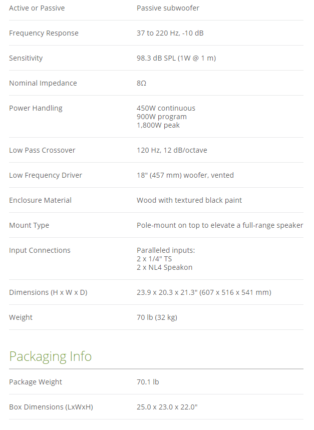 18" Passive Subwoofer가격