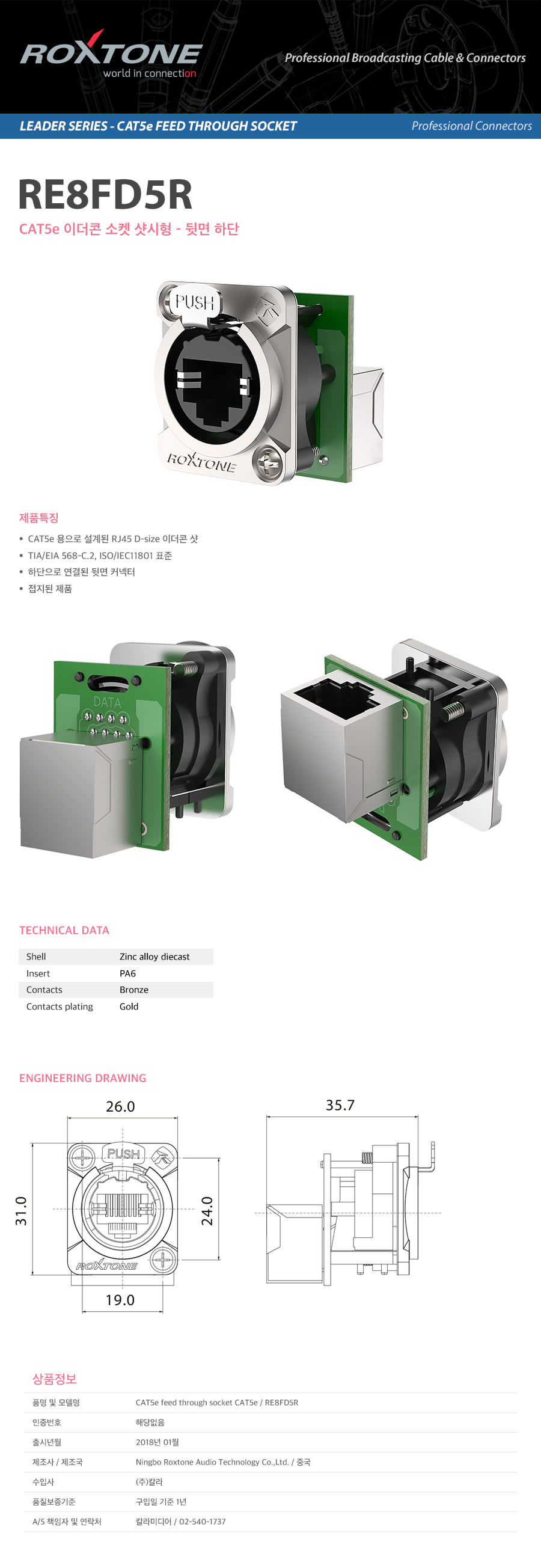 CAT5e 이더콘 샷시형 커넥터/ 뒷면 하단방향가격
