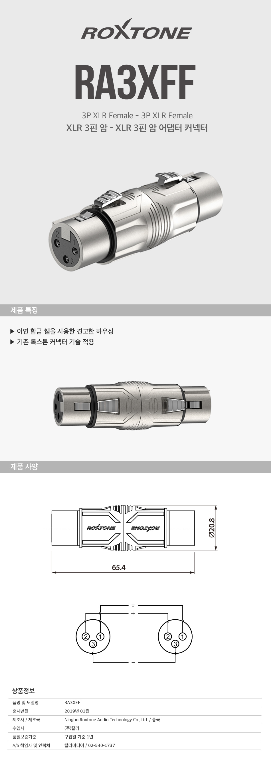 록스톤 RA3XFF 젠더형커넥터 /XLR암-XLR암 어댑터커넥터 /XLR Female-XLR Female가격