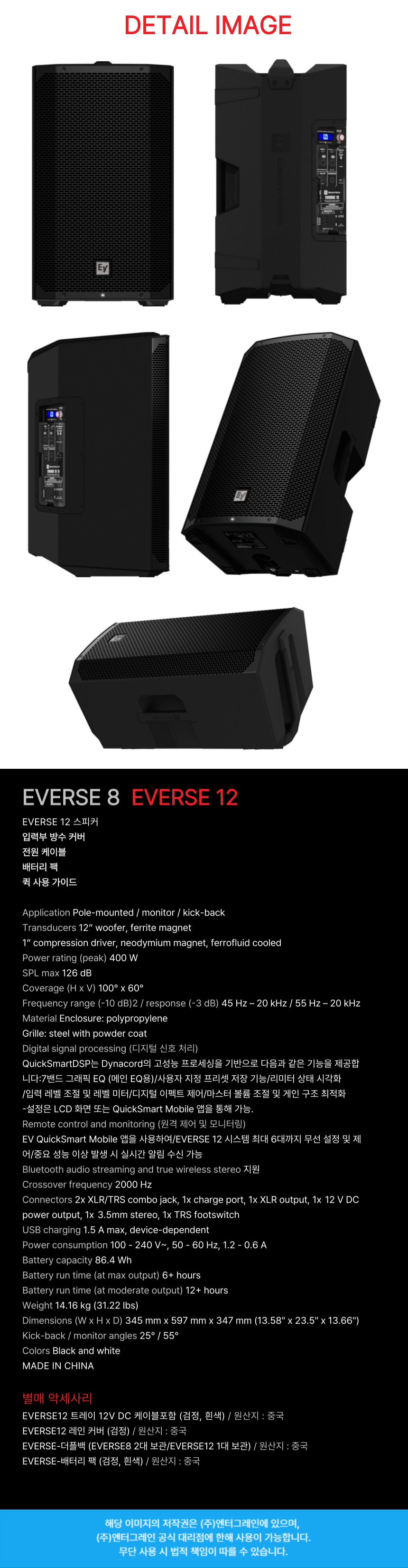 에버스 12 충전식 베터리 12인치 파워드 스피커 / 버스킹 / 블루투스오디오 재생 및 컨트롤가격