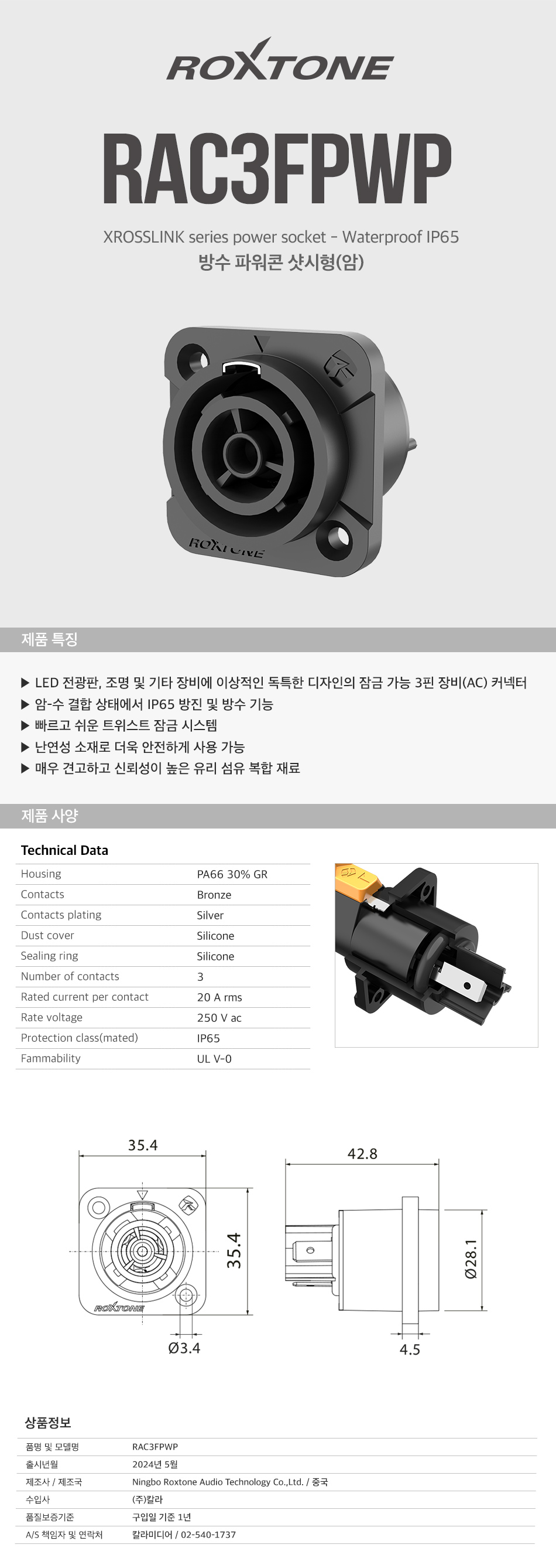 록스톤 RAC3FPWP /방수 파워콘 삿시형/암 커넥터/XROSSLINK 시리즈/Power connector가격
