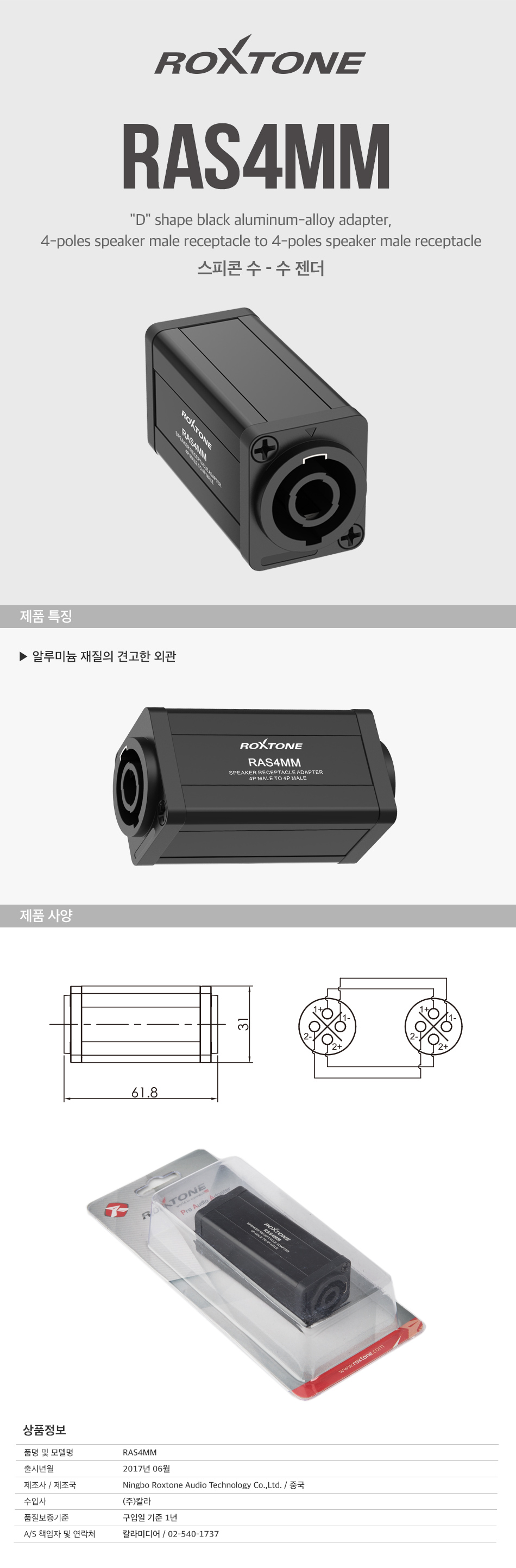 록스톤 RAS4MM /스피콘 수-수 젠더/알루미늄재질가격