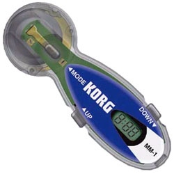업계 최초로 hand-held electronic tuner를 발명했던 Korg사는 세계에서 가장 작은 메트로놈을 선보였습니다. Korg MM1은 크기는 귀걸이 보다 약간 크지만 여러분이 원하는 리듬 트레이닝을 위해 필요한 모든 기능을 담고있는 이어폰 형식의 마이크로 메트로놈입니다.