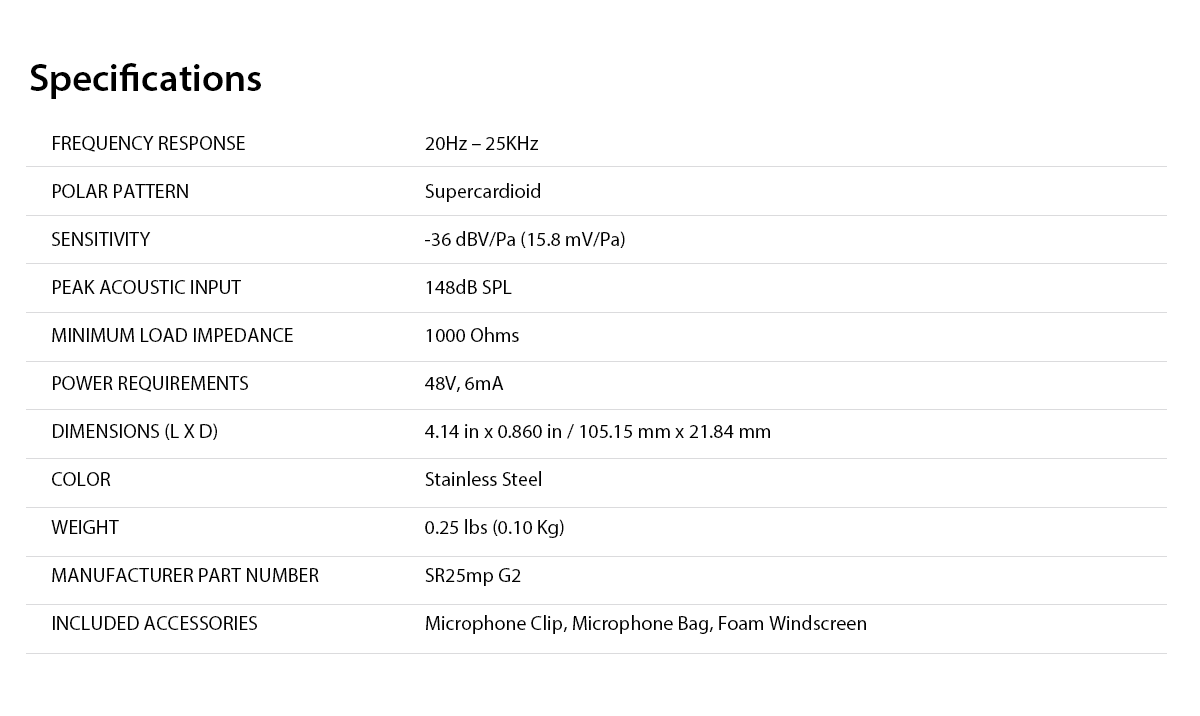 50Hz to 25kHz ±2dB at 6 inches (15cm) |