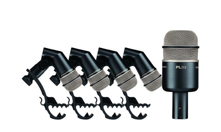 The PL33 dynamic, supercardioid, kick drum mic delivers tight low-end and punctuation for kick drums and low-frequency instruments, and the PL35 dynamic, supercardioid, tom/snare mic, with its unique body design, integrated swivel, and drum rim clamp, is voiced for exceptionally natural tom/snare sounds.