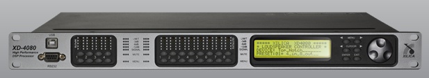 The XD-4080 is a 4 input / 8 output fixed architecture, fully programable, digital, audio system processor. Inputs can be matrix mixed/routed to any or all outputs; Our standard signal processing functions (as listed to the left) are joined by the addition of high performance FIR Crossover Filters and AES/EBU Digital Inputs and Outputs; Ethernet, USB and RS232 connectivity for configuration, control and software/firmware updates is standard; Processor configuration can be accomplished in real time from the front panel or with a computer running our easy to use XConsole software GUI. And with the Ethernet connection and a basic wired or wireless router the XConsole GUI can control individual or multiple XD-Series processors from any location.